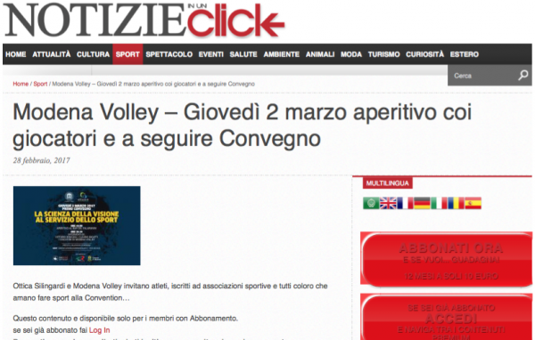 Articolo inserto in Articoli di Sports Vision,Pubblicazioni ilArgomenti: Comunicato Stampa, eventi modena, Pallavolo, sport, visione,