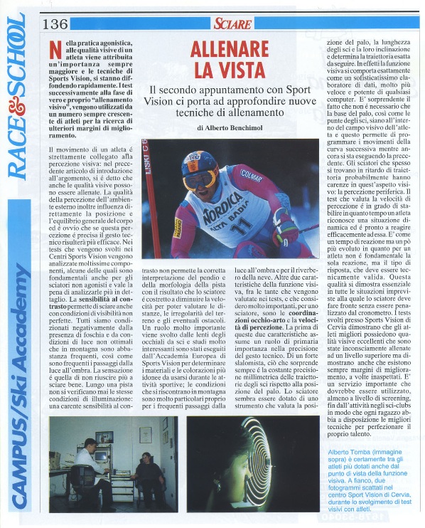 Articolo inserto in Articoli di Sports Vision,Pubblicazioni ilUnder the name of Italian Sports Vision Project we have planned a 5 year program which has already started by establishing the first Sports Vision Caenter and other two will be connected together within two months.
